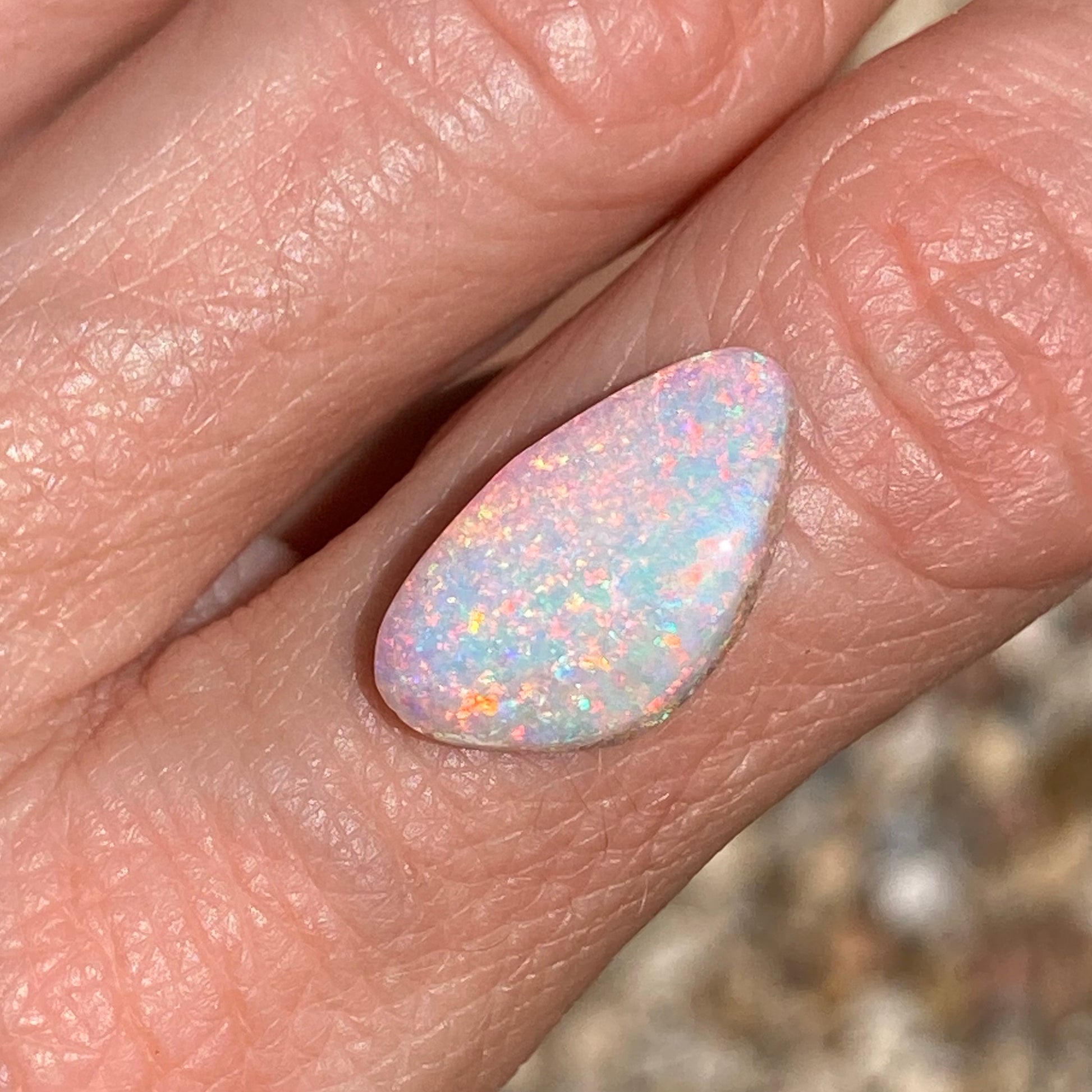 Opals can appear differently in different light situations, this opal is pictured in the sunlight.
